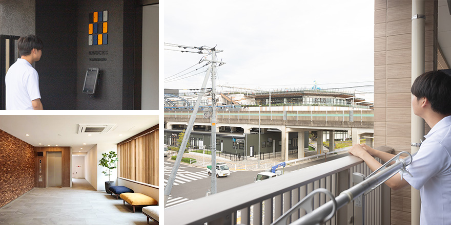 最初に選んだアパートは家賃も手ごろでキャンパスにも近かったのですが、住み始めて間もなく、騒音トラブルに巻き込まれてしまいました。安心して暮らすことができないと判断し、やむなく数カ月で転居を決意。「今度こそは安心して暮らせる物件を」とネットで情報収集していた際に出会ったのが、相鉄不動産の賃貸ブランド「KNOCKS」(現Gracia Fit)です。KNOCKSの物件はいずれも一般的な賃貸アパートに比べてデザインにも高級感があり、騒音トラブルの心配もなさそうだと思い、キャンパスの隣駅に近い「KNOCKSゆめが丘」の内覧を申し込みました。内覧時にはたまたま空室だった隣室にも入れてもらって声や物音が響かないことを確認。ゆめが丘駅から徒歩わずか2分という立地の良さにも惹かれて、その日のうちに入居を決めました。ここなら、大学まで電車とバスを乗り継いで約30分。実家から通っていた時に比べて通学時間を3分の1に抑えることができます。私は自炊派なので「ゆめが丘駅」直結の商業施設「ゆめが丘ソラトス」内に夜8時まで空いているスーパーがあることも、入居の決め手の一つでした。
